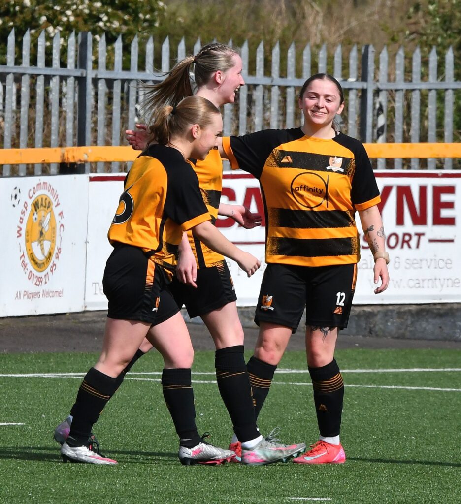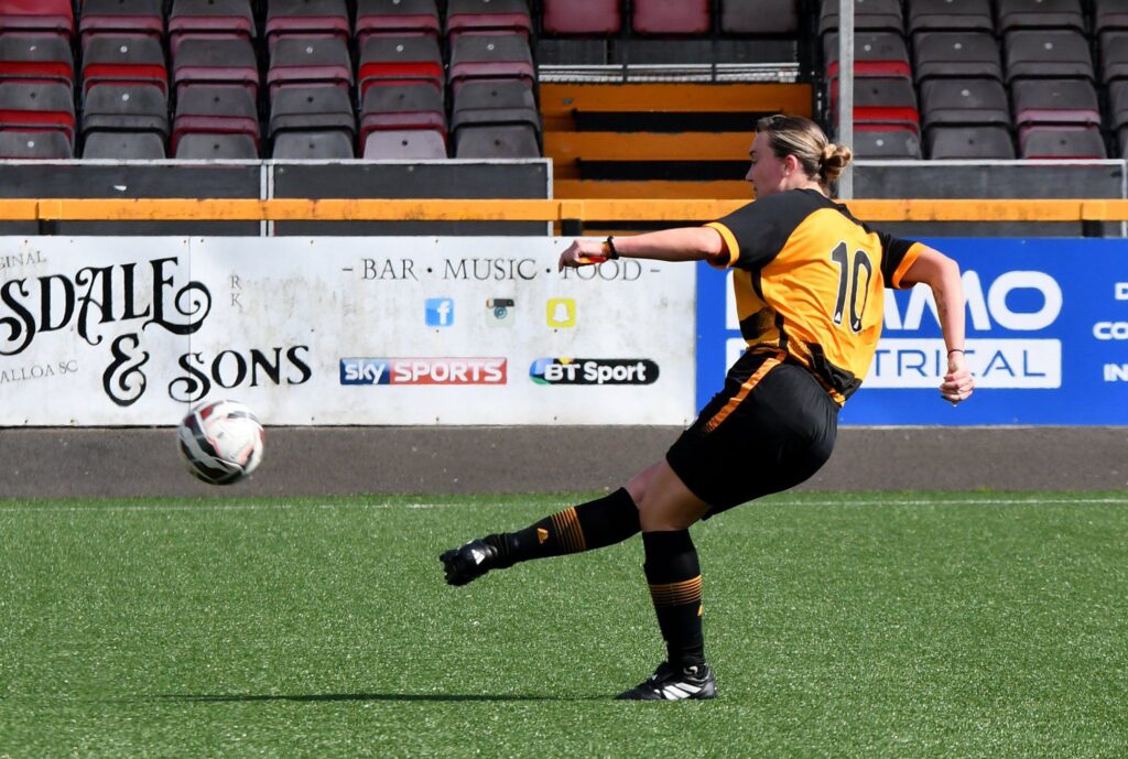 Five minutes before the break, Allan Milne’s side extended their advantage through Mia Hutcheson. Lucy Burnett’s well-delivered free-kick found the midfielder, who made no mistake to claim her third goal of the season.